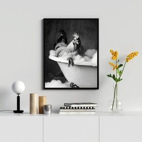 Quadro banheiro galinha tomando banho 33x24cm Cor: moldura preta Informações do produto tire todas as suas dúvidas no descritivo abaixo: decoração para quarto, sala, cozinha, escritório, área gourmet e muito mais. Chega de paredes vazias medidas - cada peça tem 33x24cm a4 . Material do papel - papel fotográfico brilhante de altíssima resolução acabamento - todos os quadros são acompanhados de uma película de acetato para proteção da imagem. - os quadros são embalados de forma segura com plástico bolha com camada dupla de acordo com o tamanho dos quadros. Garantia - garantia de 3 meses. Meu quadro chegou. Como posso fixá-lo Você precisa apenas de um martelo e um prego, pois os quadros já vão acompanhados de penduradores. Esta é a forma mais indicada. Caso prefira, você pode utilizar uma fita dupla face neste caso, sugerimos de alta qualidade para evitar que descole e seu quadro caia . Como posso limpar meu quadro A limpeza é feita como um móvel comum da sua casa. Apenas um pano seco ou espanador são suficientes para tal