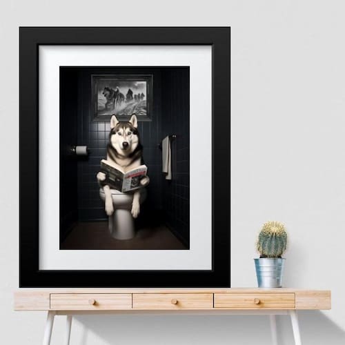 Quadro banheiro husky siberiano - 60x48cm Moldura: madeira preta Informações do produto tire todas as suas dúvidas no descritivo abaixo: decoração para quarto, sala, cozinha, escritório, área gourmet e muito mais. Chega de paredes vazias medidas - cada peça tem 60x48cm . Material do papel - papel fotográfico brilhante de altíssima resolução acabamento - todos os quadros são acompanhados de vidro para proteção da imagem. - moldura em madeira maciça na cor preta ou branca conforme produto escolhido e pendurador. - paspatur branco com 7cm de largura - os quadros são embalados de forma segura com plástico bolha com camada dupla de acordo com o tamanho dos quadros. - de 3 meses. Meu quadro chegou. Como posso fixá-lo Você precisa apenas de um martelo e um prego, pois os quadros já vão acompanhados de penduradores. Esta é a forma mais indicada. Como posso limpar meu quadro A limpeza é feita como um móvel comum da sua casa. Apenas um pano seco ou espanador são suficientes para tal Marca: Não Informado