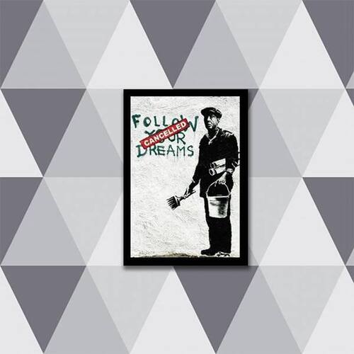 Quadro Banksy Follow Your Dreams 24X18Cm Moldura: madeira branca Informações do produto Decoração para quarto, sala, cozinha, escritório, área gourmet e muito mais. Chega de paredes vazias. Medidas - cada peça tem 24x18cm a5 . Material do papel - papel fotográfico brilhante de altíssima resolução Acabamento - todos os quadros são acompanhados de uma película de acetato para proteção da imagem. - moldura em madeira maciça na cor branca e pendurador móvel que pode ser retirado facilmente caso deseje fixar com fita dupla face. - os quadros são embalados de forma segura com plástico bolha com camada dupla de acordo com o tamanho dos quadros. - de 3 meses Meu quadro chegou. Como posso fixá-lo: Você precisa apenas de um martelo e um prego, pois os quadros já vão acompanhados de penduradores. Esta é a forma mais indicada. Caso prefira, você pode utilizar uma fita dupla face neste caso, sugerimos de alta qualidade para evitar que descole e seu quadro caia . Como posso limpar meu quadro: A limpeza é feita como um móvel comum da sua casa. Apenas um pano seco ou espanador são suficientes para tal Marca: Não Informado Ean: 7892091051053