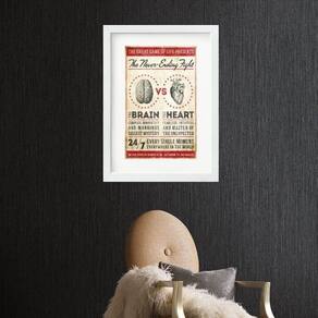 Quadro batalha cérebro x coração - 60x48cm Moldura: madeira preta Informações do produto tire todas as suas dúvidas no descritivo abaixo: decoração para quarto, sala, cozinha, escritório, área gourmet e muito mais. Chega de paredes vazias medidas - cada peça tem 60x48cm . Material do papel - papel fotográfico brilhante de altíssima resolução acabamento - todos os quadros são acompanhados de vidro para proteção da imagem. - moldura em madeira maciça na cor preta ou branca conforme produto escolhido e pendurador. - paspatur branco com 7cm de largura - os quadros são embalados de forma segura com plástico bolha com camada dupla de acordo com o tamanho dos quadros. Garantia - garantia de 3 meses. Meu quadro chegou. Como posso fixá-lo Você precisa apenas de um martelo e um prego, pois os quadros já vão acompanhados de penduradores. Esta é a forma mais indicada. Como posso limpar meu quadro A limpeza é feita como um móvel comum da sua casa. Apenas um pano seco ou espanador são suficientes para tal