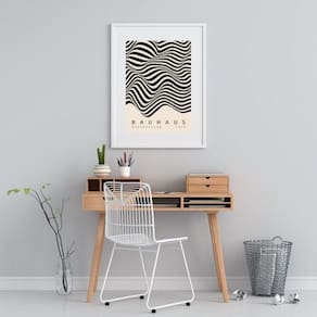 Quadro bauhaus ausstellung ondas - 60x48cm Moldura: madeira branca Informações do produto tire todas as suas dúvidas no descritivo abaixo: decoração para quarto, sala, cozinha, escritório, área gourmet e muito mais. Chega de paredes vazias medidas - cada peça tem 60x48cm . Material do papel - papel fotográfico brilhante de altíssima resolução acabamento - todos os quadros são acompanhados de vidro para proteção da imagem. - moldura em madeira maciça na cor preta ou branca conforme produto escolhido e pendurador. - paspatur branco com 7cm de largura - os quadros são embalados de forma segura com plástico bolha com camada dupla de acordo com o tamanho dos quadros. Garantia - garantia de 3 meses. Meu quadro chegou. Como posso fixá-lo Você precisa apenas de um martelo e um prego, pois os quadros já vão acompanhados de penduradores. Esta é a forma mais indicada. Como posso limpar meu quadro A limpeza é feita como um móvel comum da sua casa. Apenas um pano seco ou espanador são suficientes para tal Ean: 7894162101605