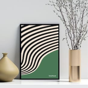 Quadro bauhaus green poster - curved sinuosity 45x34cm - com vidro Cor: moldura branca Informações do produto tire todas as suas dúvidas no descritivo abaixo: decoração para quarto, sala, cozinha, escritório, área gourmet e muito mais. Chega de paredes vazias medidas - cada peça tem 45x34cm a3 . Material do papel - papel fotográfico brilhante de altíssima resolução acabamento - todos os quadros são acompanhados de vidro para proteção da imagem. - moldura em madeira maciça na cor preta ou branca conforme produto escolhido e pendurador . - os quadros são embalados de forma segura com plástico bolha com camada dupla de acordo com o tamanho dos quadros. - de 3 meses. Meu quadro chegou. Como posso fixá-lo Você precisa apenas de um martelo e um prego, pois os quadros já vão acompanhados de penduradores. Esta é a forma mais indicada. Como posso limpar meu quadro A limpeza é feita como um móvel comum da sua casa. Apenas um pano seco ou espanador são suficientes para tal