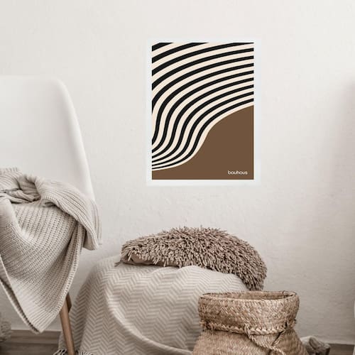 Quadro bauhaus marrom - curved sinuosity 33x24cm - com vidro Cor: moldura branca Informações do produto tire todas as suas dúvidas no descritivo abaixo: decoração para quarto, sala, cozinha, escritório, área gourmet e muito mais. Chega de paredes vazias medidas - cada peça tem 33x24cm a4 . Material do papel - papel fotográfico brilhante de altíssima resolução acabamento - todos os quadros são acompanhados de vidro para proteção da imagem. - moldura em madeira maciça na cor preta ou branca conforme produto escolhido e pendurador . - os quadros são embalados de forma segura com plástico bolha com camada dupla de acordo com o tamanho dos quadros. - de 3 meses. Meu quadro chegou. Como posso fixá-lo Você precisa apenas de um martelo e um prego, pois os quadros já vão acompanhados de penduradores. Esta é a forma mais indicada. Como posso limpar meu quadro A limpeza é feita como um móvel comum da sua casa. Apenas um pano seco ou espanador são suficientes para tal