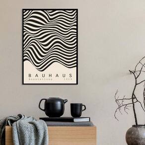 Quadro bauhaus ondas bege com preto 33x24cm Moldura: madeira preta Informações do produto tire todas as suas dúvidas no descritivo abaixo: decoração para quarto, sala, cozinha, escritório, área gourmet e muito mais. Chega de paredes vazias medidas - cada peça tem 33x24cm a4 . Material do papel - papel fotográfico brilhante de altíssima resolução acabamento - todos os quadros são acompanhados de uma película de acetato para proteção da imagem. - os quadros são embalados de forma segura com plástico bolha com camada dupla de acordo com o tamanho dos quadros. Garantia - garantia de 3 meses. Meu quadro chegou. Como posso fixá-lo Você precisa apenas de um martelo e um prego, pois os quadros já vão acompanhados de penduradores. Esta é a forma mais indicada. Caso prefira, você pode utilizar uma fita dupla face neste caso, sugerimos de alta qualidade para evitar que descole e seu quadro caia . Como posso limpar meu quadro A limpeza é feita como um móvel comum da sua casa. Apenas um pano seco ou espanador são suficientes para tal
