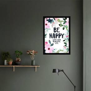 Quadro be happy 24x18cm - com vidro Moldura: madeira preta Informações do produto tire todas as suas dúvidas no descritivo abaixo: decoração para quarto, sala, cozinha, escritório, área gourmet e muito mais. Chega de paredes vazias medidas - cada peça tem 24x18cm a5 . Material do papel - papel fotográfico brilhante de altíssima resolução acabamento - todos os quadros são acompanhados de vidro para proteção da imagem. - moldura em madeira maciça na cor preta e pendurador . - os quadros são embalados de forma segura com plástico bolha com camada dupla de acordo com o tamanho dos quadros. - de 3 meses. Meu quadro chegou. Como posso fixá-lo Você precisa apenas de um martelo e um prego, pois os quadros já vão acompanhados de penduradores. Esta é a forma mais indicada. Como posso limpar meu quadro A limpeza é feita como um móvel comum da sua casa. Apenas um pano seco ou espanador são suficientes para tal Ean: 7895145442937