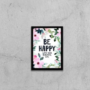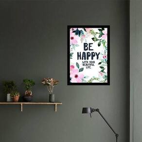 Quadro be happy 33x24cm - com vidro Moldura: madeira preta Informações do produto tire todas as suas dúvidas no descritivo abaixo: decoração para quarto, sala, cozinha, escritório, área gourmet e muito mais. Chega de paredes vazias medidas - cada peça tem 33x24cm a4 . Material do papel - papel fotográfico brilhante de altíssima resolução acabamento - todos os quadros são acompanhados de vidro para proteção da imagem. - moldura em madeira maciça na cor preta e pendurador . - os quadros são embalados de forma segura com plástico bolha com camada dupla de acordo com o tamanho dos quadros. - de 3 meses. Meu quadro chegou. Como posso fixá-lo Você precisa apenas de um martelo e um prego, pois os quadros já vão acompanhados de penduradores. Esta é a forma mais indicada. Como posso limpar meu quadro A limpeza é feita como um móvel comum da sua casa. Apenas um pano seco ou espanador são suficientes para tal Marca: Não Informado