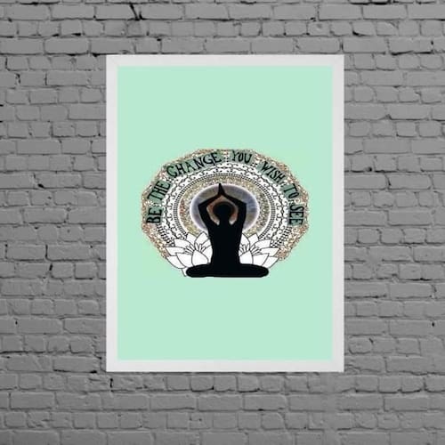 Quadro be the change you wish to see 33x24cm - com vidro Moldura: madeira preta Informações do produto tire todas as suas dúvidas no descritivo abaixo: decoração para quarto, sala, cozinha, escritório, área gourmet e muito mais. Chega de paredes vazias medidas - cada peça tem 33x24cm a4 . Material do papel - papel fotográfico brilhante de altíssima resolução acabamento - todos os quadros são acompanhados de vidro para proteção da imagem. - moldura em madeira maciça na cor preta e pendurador . - os quadros são embalados de forma segura com plástico bolha com camada dupla de acordo com o tamanho dos quadros. - de 3 meses. Meu quadro chegou. Como posso fixá-lo Você precisa apenas de um martelo e um prego, pois os quadros já vão acompanhados de penduradores. Esta é a forma mais indicada. Como posso limpar meu quadro A limpeza é feita como um móvel comum da sua casa. Apenas um pano seco ou espanador são suficientes para tal Ean: 7895142250047