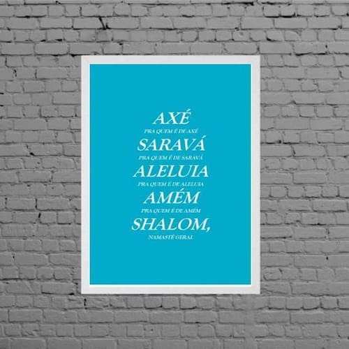 Quadro bençãos em várias religiões 45x34cm - com vidro Moldura: madeira preta Informações do produto tire todas as suas dúvidas no descritivo abaixo: decoração para quarto, sala, cozinha, escritório, área gourmet e muito mais. Chega de paredes vazias medidas - cada peça tem 45x34cm a3 . Material do papel - papel fotográfico brilhante de altíssima resolução acabamento - todos os quadros são acompanhados de vidro para proteção da imagem. - moldura em madeira maciça na cor preta e pendurador . - os quadros são embalados de forma segura com plástico bolha com camada dupla de acordo com o tamanho dos quadros. Garantia - garantia de 3 meses. Meu quadro chegou. Como posso fixá-lo Você precisa apenas de um martelo e um prego, pois os quadros já vão acompanhados de penduradores. Esta é a forma mais indicada. Como posso limpar meu quadro A limpeza é feita como um móvel comum da sua casa. Apenas um pano seco ou espanador são suficientes para tal