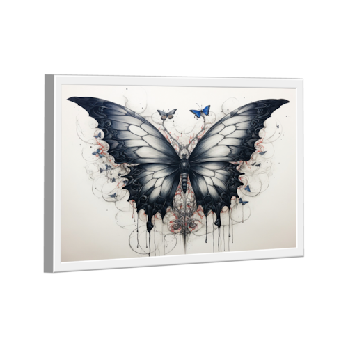 Quadro Black Butterfly -- BR ARTES Moldura Branca - Pequeno 60x40 -