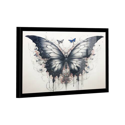 Quadro Black Butterfly -- BR ARTES Moldura Preta e Vidro - Ultra Grande 150x100 -