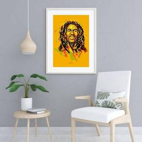 Quadro bob marley amarelo - 60x48cm Moldura: madeira branca Informações do produto tire todas as suas dúvidas no descritivo abaixo: decoração para quarto, sala, cozinha, escritório, área gourmet e muito mais. Chega de paredes vazias medidas - cada peça tem 60x48cm . Material do papel - papel fotográfico brilhante de altíssima resolução acabamento - todos os quadros são acompanhados de vidro para proteção da imagem. - moldura em madeira maciça na cor preta ou branca conforme produto escolhido e pendurador. - paspatur branco com 7cm de largura - os quadros são embalados de forma segura com plástico bolha com camada dupla de acordo com o tamanho dos quadros. Garantia - garantia de 3 meses. Meu quadro chegou. Como posso fixá-lo Você precisa apenas de um martelo e um prego, pois os quadros já vão acompanhados de penduradores. Esta é a forma mais indicada. Como posso limpar meu quadro A limpeza é feita como um móvel comum da sua casa. Apenas um pano seco ou espanador são suficientes para tal