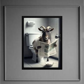 Quadro bode no banheiro lendo jornal 33x24cm Moldura: madeira preta Informações do produto tire todas as suas dúvidas no descritivo abaixo: decoração para quarto, sala, cozinha, escritório, área gourmet e muito mais. Chega de paredes vazias medidas - cada peça tem 33x24cm a4 . Material do papel - papel fotográfico brilhante de altíssima resolução acabamento - todos os quadros são acompanhados de uma película de acetato para proteção da imagem. - os quadros são embalados de forma segura com plástico bolha com camada dupla de acordo com o tamanho dos quadros. Garantia - garantia de 3 meses. Meu quadro chegou. Como posso fixá-lo Você precisa apenas de um martelo e um prego, pois os quadros já vão acompanhados de penduradores. Esta é a forma mais indicada. Caso prefira, você pode utilizar uma fita dupla face neste caso, sugerimos de alta qualidade para evitar que descole e seu quadro caia . Como posso limpar meu quadro A limpeza é feita como um móvel comum da sua casa. Apenas um pano seco ou espanador são suficientes para tal