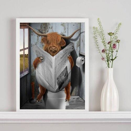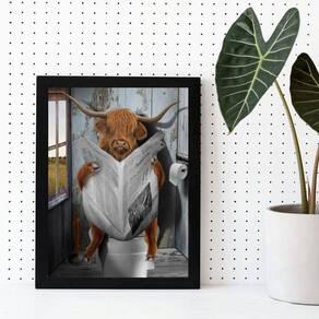 Quadro boi no banheiro lendo jornal 24x18cm - com vidro Moldura: madeira branca Informações do produto tire todas as suas dúvidas no descritivo abaixo: decoração para quarto, sala, cozinha, escritório, área gourmet e muito mais. Chega de paredes vazias medidas - cada peça tem 24x18cm a5 . Material do papel - papel fotográfico brilhante de altíssima resolução acabamento - todos os quadros são acompanhados de vidro para proteção da imagem. - moldura em madeira maciça na cor preta ou branca conforme produto escolhido e pendurador . - os quadros são embalados de forma segura com plástico bolha com camada dupla de acordo com o tamanho dos quadros. Garantia - garantia de 3 meses. Meu quadro chegou. Como posso fixá-lo Você precisa apenas de um martelo e um prego, pois os quadros já vão acompanhados de penduradores. Esta é a forma mais indicada. Como posso limpar meu quadro A limpeza é feita como um móvel comum da sua casa. Apenas um pano seco ou espanador são suficientes para tal
