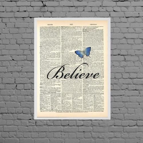 Quadro Borboleta Azul Believe 45X34Cm Com Vidro - Branca
