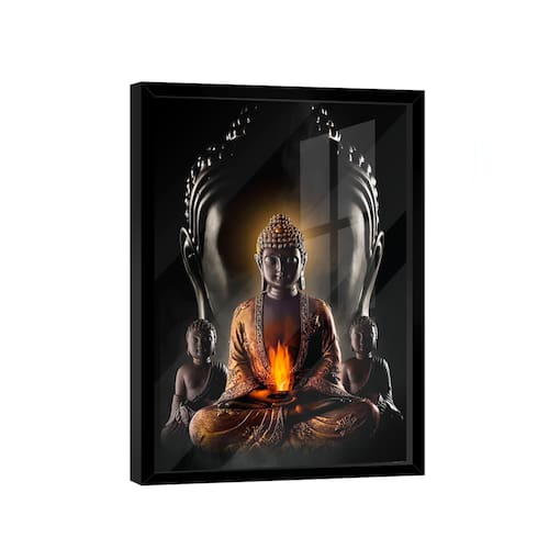 Quadro Buda Fire -- BR ARTES Moldura Preta e Vidro - Grande 118x78 -