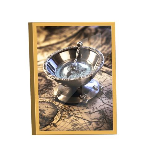Quadro Bússola Decorativa -- BR ARTES Moldura Dourada e Vidro - Grande 118x78 -