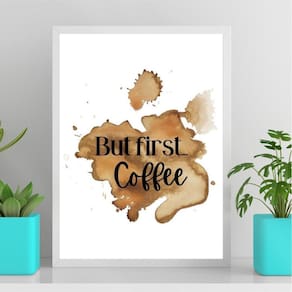 Quadro but first coffee - aquarela 33x24cm - com vidro Cor: moldura branca Informações do produto tire todas as suas dúvidas no descritivo abaixo: decoração para quarto, sala, cozinha, escritório, área gourmet e muito mais. Chega de paredes vazias medidas - cada peça tem 33x24cm a4 . Material do papel - papel fotográfico brilhante de altíssima resolução acabamento - todos os quadros são acompanhados de vidro para proteção da imagem. - moldura em madeira maciça na cor preta ou branca conforme produto escolhido e pendurador . - os quadros são embalados de forma segura com plástico bolha com camada dupla de acordo com o tamanho dos quadros. - de 3 meses. Meu quadro chegou. Como posso fixá-lo Você precisa apenas de um martelo e um prego, pois os quadros já vão acompanhados de penduradores. Esta é a forma mais indicada. Como posso limpar meu quadro A limpeza é feita como um móvel comum da sua casa. Apenas um pano seco ou espanador são suficientes para tal Marca: Não Informado