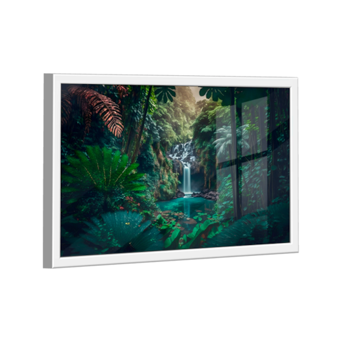 Quadro Cachoeira Secreta -- BR ARTES Moldura Branca e Vidro - Pequeno 60x40 -