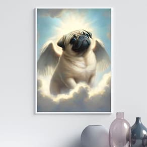 Quadro cachorrinho pug com asas 45x34cm Moldura: madeira branca Informações do produto tire todas as suas dúvidas no descritivo abaixo: decoração para quarto, sala, cozinha, escritório, área gourmet e muito mais. Chega de paredes vazias. Medidas - cada peça tem 45x34cm a3 . Material do papel - papel fotográfico brilhante de altíssima resolução acabamento - todos os quadros são acompanhados de uma película de acetato para proteção da imagem. - os quadros são embalados de forma segura com plástico bolha com camada dupla de acordo com o tamanho dos quadros. Garantia - garantia de 3 meses. Meu quadro chegou. Como posso fixá-lo Você precisa apenas de um martelo e um prego, pois os quadros já vão acompanhados de penduradores. Esta é a forma mais indicada. Caso prefira, você pode utilizar uma fita dupla face neste caso, sugerimos de alta qualidade para evitar que descole e seu quadro caia . Como posso limpar meu quadro A limpeza é feita como um móvel comum da sua casa. Apenas um pano seco ou espanador são suficientes para tal