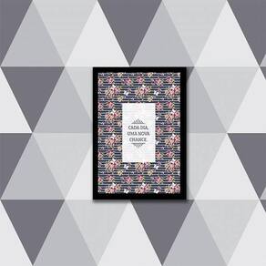Quadro cada dia uma nova chance 45x34cm - com vidro Moldura: madeira preta Informações do produto tire todas as suas dúvidas no descritivo abaixo: decoração para quarto, sala, cozinha, escritório, área gourmet e muito mais. Chega de paredes vazias medidas - cada peça tem 45x34cm a3 . Material do papel - papel fotográfico brilhante de altíssima resolução acabamento - todos os quadros são acompanhados de vidro para proteção da imagem. - moldura em madeira maciça na cor preta e pendurador . - os quadros são embalados de forma segura com plástico bolha com camada dupla de acordo com o tamanho dos quadros. - de 3 meses. Meu quadro chegou. Como posso fixá-lo Você precisa apenas de um martelo e um prego, pois os quadros já vão acompanhados de penduradores. Esta é a forma mais indicada. Como posso limpar meu quadro A limpeza é feita como um móvel comum da sua casa. Apenas um pano seco ou espanador são suficientes para tal Marca: Não Informado
