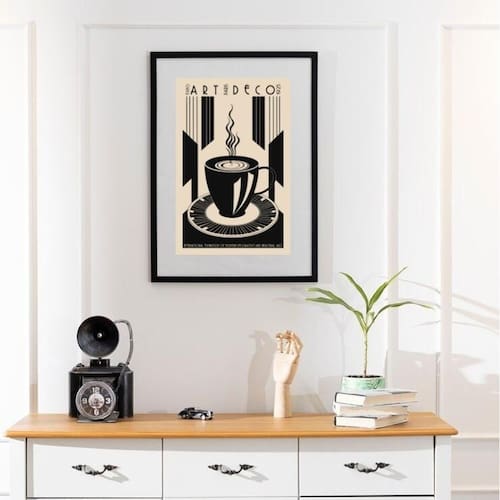 Quadro café art deco - 60x48cm Cor: moldura preta Informações do produto tire todas as suas dúvidas no descritivo abaixo: decoração para quarto, sala, cozinha, escritório, área gourmet e muito mais. Chega de paredes vazias medidas - cada peça tem 60x48cm . Material do papel - papel fotográfico brilhante de altíssima resolução acabamento - todos os quadros são acompanhados de vidro para proteção da imagem. - moldura em madeira maciça na cor preta ou branca conforme produto escolhido e pendurador. - paspatur branco com 7cm de largura - os quadros são embalados de forma segura com plástico bolha com camada dupla de acordo com o tamanho dos quadros. Garantia - garantia de 3 meses. Meu quadro chegou. Como posso fixá-lo Você precisa apenas de um martelo e um prego, pois os quadros já vão acompanhados de penduradores. Esta é a forma mais indicada. Como posso limpar meu quadro A limpeza é feita como um móvel comum da sua casa. Apenas um pano seco ou espanador são suficientes para tal Ean: 7891234544452