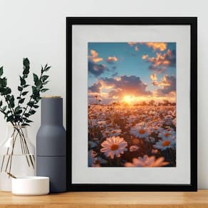 Quadro campo de margaridas 60x48cm Cor: moldura branca Informações do produto tire todas as suas dúvidas no descritivo abaixo: decoração para quarto, sala, cozinha, escritório, área gourmet e muito mais. Chega de paredes vazias medidas - cada peça tem 60x48cm . Material do papel - papel fotográfico brilhante de altíssima resolução acabamento - todos os quadros são acompanhados de vidro para proteção da imagem. - moldura em madeira maciça na cor preta ou branca conforme produto escolhido e pendurador. - paspatur branco com 7cm de largura - os quadros são embalados de forma segura com plástico bolha com camada dupla de acordo com o tamanho dos quadros. Garantia - garantia de 3 meses. Meu quadro chegou. Como posso fixá-lo Você precisa apenas de um martelo e um prego, pois os quadros já vão acompanhados de penduradores. Esta é a forma mais indicada. Como posso limpar meu quadro A limpeza é feita como um móvel comum da sua casa. Apenas um pano seco ou espanador são suficientes para tal