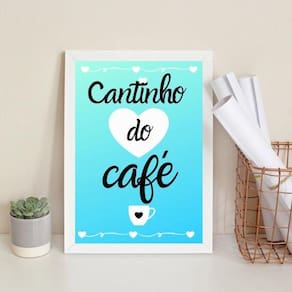Quadro cantinho do café azul 24x18cm - com vidro Moldura: madeira preta Informações do produto tire todas as suas dúvidas no descritivo abaixo: decoração para quarto, sala, cozinha, escritório, área gourmet e muito mais. Chega de paredes vazias medidas - cada peça tem 24x18cm a5 . Material do papel - papel fotográfico brilhante de altíssima resolução acabamento - todos os quadros são acompanhados de vidro para proteção da imagem. - moldura em madeira maciça na cor preta e pendurador . - os quadros são embalados de forma segura com plástico bolha com camada dupla de acordo com o tamanho dos quadros. Garantia - garantia de 3 meses. Meu quadro chegou. Como posso fixá-lo Você precisa apenas de um martelo e um prego, pois os quadros já vão acompanhados de penduradores. Esta é a forma mais indicada. Como posso limpar meu quadro A limpeza é feita como um móvel comum da sua casa. Apenas um pano seco ou espanador são suficientes para tal Ean: 7895725421918