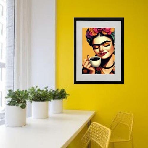 Quadro cantinho do café frida - 60x48cm Moldura: madeira branca Informações do produto tire todas as suas dúvidas no descritivo abaixo: decoração para quarto, sala, cozinha, escritório, área gourmet e muito mais. Chega de paredes vazias medidas - cada peça tem 60x48cm . Material do papel - papel fotográfico brilhante de altíssima resolução acabamento - todos os quadros são acompanhados de vidro para proteção da imagem. - moldura em madeira maciça na cor preta ou branca conforme produto escolhido e pendurador. - paspatur branco com 7cm de largura - os quadros são embalados de forma segura com plástico bolha com camada dupla de acordo com o tamanho dos quadros. Garantia - garantia de 3 meses. Meu quadro chegou. Como posso fixá-lo Você precisa apenas de um martelo e um prego, pois os quadros já vão acompanhados de penduradores. Esta é a forma mais indicada. Como posso limpar meu quadro A limpeza é feita como um móvel comum da sua casa. Apenas um pano seco ou espanador são suficientes para tal