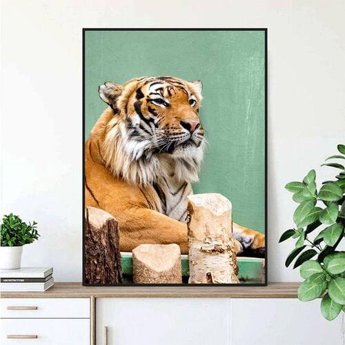 Quadro Canvas Decorativo para Sala Tigre Observador 90x60