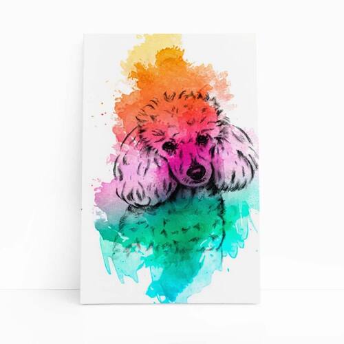 Quadro Canvas Poodle Cachorro Aquarela Laranja 60X40Cm