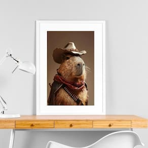 Quadro capivara cowboy - 60x48cm Cor: moldura preta Informações do produto tire todas as suas dúvidas no descritivo abaixo: decoração para quarto, sala, cozinha, escritório, área gourmet e muito mais. Chega de paredes vazias medidas - cada peça tem 60x48cm . Material do papel - papel fotográfico brilhante de altíssima resolução acabamento - todos os quadros são acompanhados de vidro para proteção da imagem. - moldura em madeira maciça na cor preta ou branca conforme produto escolhido e pendurador. - paspatur branco com 7cm de largura - os quadros são embalados de forma segura com plástico bolha com camada dupla de acordo com o tamanho dos quadros. Garantia - garantia de 3 meses. Meu quadro chegou. Como posso fixá-lo Você precisa apenas de um martelo e um prego, pois os quadros já vão acompanhados de penduradores. Esta é a forma mais indicada. Como posso limpar meu quadro A limpeza é feita como um móvel comum da sua casa. Apenas um pano seco ou espanador são suficientes para tal