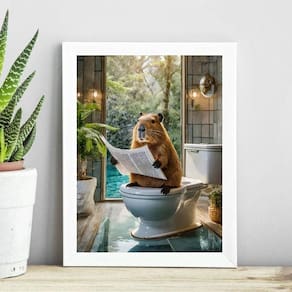 Quadro capivara no banheiro lendo jornal 33x24cm - com vidro Moldura: madeira branca Informações do produto tire todas as suas dúvidas no descritivo abaixo: decoração para quarto, sala, cozinha, escritório, área gourmet e muito mais. Chega de paredes vazias medidas - cada peça tem 33x24cm a4 . Material do papel - papel fotográfico brilhante de altíssima resolução acabamento - todos os quadros são acompanhados de vidro para proteção da imagem. - moldura em madeira maciça na cor preta ou branca conforme produto escolhido e pendurador . - os quadros são embalados de forma segura com plástico bolha com camada dupla de acordo com o tamanho dos quadros. Garantia - garantia de 3 meses. Meu quadro chegou. Como posso fixá-lo Você precisa apenas de um martelo e um prego, pois os quadros já vão acompanhados de penduradores. Esta é a forma mais indicada. Como posso limpar meu quadro A limpeza é feita como um móvel comum da sua casa. Apenas um pano seco ou espanador são suficientes para tal