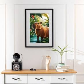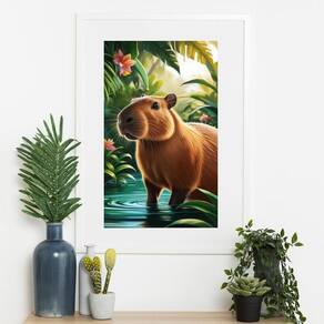 Quadro capivara tropical - 60x48cm Cor: moldura branca Informações do produto tire todas as suas dúvidas no descritivo abaixo: decoração para quarto, sala, cozinha, escritório, área gourmet e muito mais. Chega de paredes vazias medidas - cada peça tem 60x48cm . Material do papel - papel fotográfico brilhante de altíssima resolução acabamento - todos os quadros são acompanhados de vidro para proteção da imagem. - moldura em madeira maciça na cor preta ou branca conforme produto escolhido e pendurador. - paspatur branco com 7cm de largura - os quadros são embalados de forma segura com plástico bolha com camada dupla de acordo com o tamanho dos quadros. Garantia - garantia de 3 meses. Meu quadro chegou. Como posso fixá-lo Você precisa apenas de um martelo e um prego, pois os quadros já vão acompanhados de penduradores. Esta é a forma mais indicada. Como posso limpar meu quadro A limpeza é feita como um móvel comum da sua casa. Apenas um pano seco ou espanador são suficientes para tal