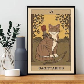 Quadro carta tarot gato signo sagitário 45x34cm Moldura: madeira preta Informações do produto tire todas as suas dúvidas no descritivo abaixo: decoração para quarto, sala, cozinha, escritório, área gourmet e muito mais. Chega de paredes vazias. Medidas - cada peça tem 45x34cm a3 . Material do papel - papel fotográfico brilhante de altíssima resolução acabamento - todos os quadros são acompanhados de uma película de acetato para proteção da imagem. - os quadros são embalados de forma segura com plástico bolha com camada dupla de acordo com o tamanho dos quadros. Garantia - garantia de 3 meses. Meu quadro chegou. Como posso fixá-lo Você precisa apenas de um martelo e um prego, pois os quadros já vão acompanhados de penduradores. Esta é a forma mais indicada. Caso prefira, você pode utilizar uma fita dupla face neste caso, sugerimos de alta qualidade para evitar que descole e seu quadro caia . Como posso limpar meu quadro A limpeza é feita como um móvel comum da sua casa. Apenas um pano seco ou espanador são suficientes para tal Ean: 7898634696132
