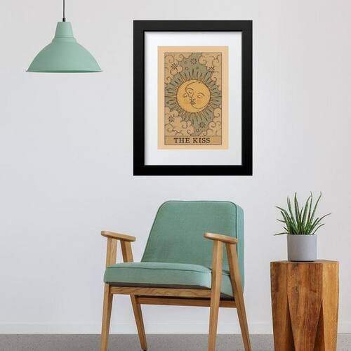 Quadro carta tarot kiss sol lua 60x48cm Moldura: madeira branca Informações do produto tire todas as suas dúvidas no descritivo abaixo: decoração para quarto, sala, cozinha, escritório, área gourmet e muito mais. Chega de paredes vazias medidas - cada peça tem 60x48cm . Material do papel - papel fotográfico brilhante de altíssima resolução acabamento - todos os quadros são acompanhados de vidro para proteção da imagem. - moldura em madeira maciça na cor preta ou branca conforme produto escolhido e pendurador. - paspatur branco com 7cm de largura - os quadros são embalados de forma segura com plástico bolha com camada dupla de acordo com o tamanho dos quadros. Garantia - garantia de 3 meses. Meu quadro chegou. Como posso fixá-lo Você precisa apenas de um martelo e um prego, pois os quadros já vão acompanhados de penduradores. Esta é a forma mais indicada. Como posso limpar meu quadro A limpeza é feita como um móvel comum da sua casa. Apenas um pano seco ou espanador são suficientes para tal