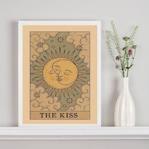 Quadro carta tarot the kiss - sol e lua 33x24cm - com vidro Moldura: madeira preta Informações do produto tire todas as suas dúvidas no descritivo abaixo: decoração para quarto, sala, cozinha, escritório, área gourmet e muito mais. Chega de paredes vazias medidas - cada peça tem 33x24cm a4 . Material do papel - papel fotográfico brilhante de altíssima resolução acabamento - todos os quadros são acompanhados de vidro para proteção da imagem. - moldura em madeira maciça na cor preta ou branca conforme produto escolhido e pendurador . - os quadros são embalados de forma segura com plástico bolha com camada dupla de acordo com o tamanho dos quadros. Garantia - garantia de 3 meses. Meu quadro chegou. Como posso fixá-lo Você precisa apenas de um martelo e um prego, pois os quadros já vão acompanhados de penduradores. Esta é a forma mais indicada. Como posso limpar meu quadro A limpeza é feita como um móvel comum da sua casa. Apenas um pano seco ou espanador são suficientes para tal