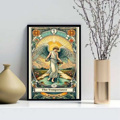 Quadro carta tarot vintage - a temperança 33x24cm Cor: moldura branca Informações do produto tire todas as suas dúvidas no descritivo abaixo: decoração para quarto, sala, cozinha, escritório, área gourmet e muito mais. Chega de paredes vazias medidas - cada peça tem 33x24cm a4 . Material do papel - papel fotográfico brilhante de altíssima resolução acabamento - todos os quadros são acompanhados de uma película de acetato para proteção da imagem. - os quadros são embalados de forma segura com plástico bolha com camada dupla de acordo com o tamanho dos quadros. Garantia - garantia de 3 meses. Meu quadro chegou. Como posso fixá-lo Você precisa apenas de um martelo e um prego, pois os quadros já vão acompanhados de penduradores. Esta é a forma mais indicada. Caso prefira, você pode utilizar uma fita dupla face neste caso, sugerimos de alta qualidade para evitar que descole e seu quadro caia . Como posso limpar meu quadro A limpeza é feita como um móvel comum da sua casa. Apenas um pano seco ou espanador são suficientes para tal Ean: 7891234529442