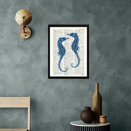 Quadro Casa De Praia - Cavalos Marinhos 45X34Cm - Com Vidro