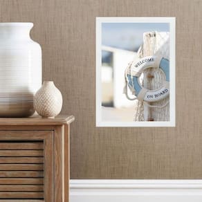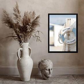 Quadro casa de praia - welcome on board 24x18cm - com vidro Moldura: madeira branca Informações do produto tire todas as suas dúvidas no descritivo abaixo: decoração para quarto, sala, cozinha, escritório, área gourmet e muito mais. Chega de paredes vazias medidas - cada peça tem 24x18cm a5 . Material do papel - papel fotográfico brilhante de altíssima resolução acabamento - todos os quadros são acompanhados de vidro para proteção da imagem. - moldura em madeira maciça na cor preta ou branca conforme produto escolhido e pendurador . - os quadros são embalados de forma segura com plástico bolha com camada dupla de acordo com o tamanho dos quadros. Garantia - garantia de 3 meses. Meu quadro chegou. Como posso fixá-lo Você precisa apenas de um martelo e um prego, pois os quadros já vão acompanhados de penduradores. Esta é a forma mais indicada. Como posso limpar meu quadro A limpeza é feita como um móvel comum da sua casa. Apenas um pano seco ou espanador são suficientes para tal
