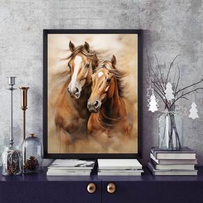 Quadro casal de cavalos 45x34cm Cor: moldura branca Informações do produto tire todas as suas dúvidas no descritivo abaixo: decoração para quarto, sala, cozinha, escritório, área gourmet e muito mais. Chega de paredes vazias. Medidas - cada peça tem 45x34cm a3 . Material do papel - papel fotográfico brilhante de altíssima resolução acabamento - todos os quadros são acompanhados de uma película de acetato para proteção da imagem. - os quadros são embalados de forma segura com plástico bolha com camada dupla de acordo com o tamanho dos quadros. Garantia - garantia de 3 meses. Meu quadro chegou. Como posso fixá-lo Você precisa apenas de um martelo e um prego, pois os quadros já vão acompanhados de penduradores. Esta é a forma mais indicada. Caso prefira, você pode utilizar uma fita dupla face neste caso, sugerimos de alta qualidade para evitar que descole e seu quadro caia . Como posso limpar meu quadro A limpeza é feita como um móvel comum da sua casa. Apenas um pano seco ou espanador são suficientes para tal