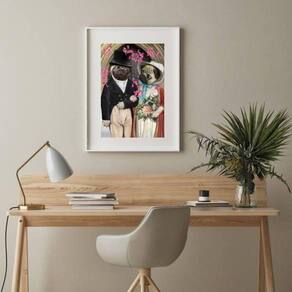 Quadro casamento pug - 60x48cm Moldura: madeira preta Informações do produto tire todas as suas dúvidas no descritivo abaixo: decoração para quarto, sala, cozinha, escritório, área gourmet e muito mais. Chega de paredes vazias medidas - cada peça tem 60x48cm . Material do papel - papel fotográfico brilhante de altíssima resolução acabamento - todos os quadros são acompanhados de vidro para proteção da imagem. - moldura em madeira maciça na cor preta ou branca conforme produto escolhido e pendurador. - paspatur branco com 7cm de largura - os quadros são embalados de forma segura com plástico bolha com camada dupla de acordo com o tamanho dos quadros. Garantia - garantia de 3 meses. Meu quadro chegou. Como posso fixá-lo Você precisa apenas de um martelo e um prego, pois os quadros já vão acompanhados de penduradores. Esta é a forma mais indicada. Como posso limpar meu quadro A limpeza é feita como um móvel comum da sua casa. Apenas um pano seco ou espanador são suficientes para tal