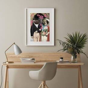 Quadro casamento pug - 60x48cm Moldura: madeira branca Informações do produto tire todas as suas dúvidas no descritivo abaixo: decoração para quarto, sala, cozinha, escritório, área gourmet e muito mais. Chega de paredes vazias medidas - cada peça tem 60x48cm . Material do papel - papel fotográfico brilhante de altíssima resolução acabamento - todos os quadros são acompanhados de vidro para proteção da imagem. - moldura em madeira maciça na cor preta ou branca conforme produto escolhido e pendurador. - paspatur branco com 7cm de largura - os quadros são embalados de forma segura com plástico bolha com camada dupla de acordo com o tamanho dos quadros. - de 3 meses. Meu quadro chegou. Como posso fixá-lo Você precisa apenas de um martelo e um prego, pois os quadros já vão acompanhados de penduradores. Esta é a forma mais indicada. Como posso limpar meu quadro A limpeza é feita como um móvel comum da sua casa. Apenas um pano seco ou espanador são suficientes para tal Marca: Não Informado