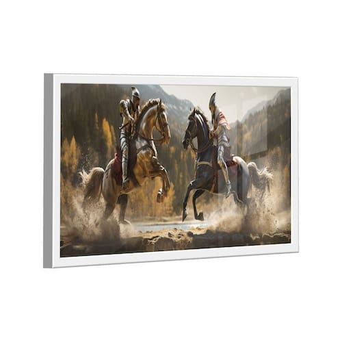 Quadro Cavaleiros Medievais -- Br Artes Quadro Cavaleiros Medievais -- BR ARTES Moldura Branca e Vidro - Grande 118x78 - - Qualidade Premium (padrão museu)