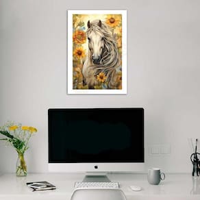 Quadro cavalo com girassóis 45x34cm - com vidro