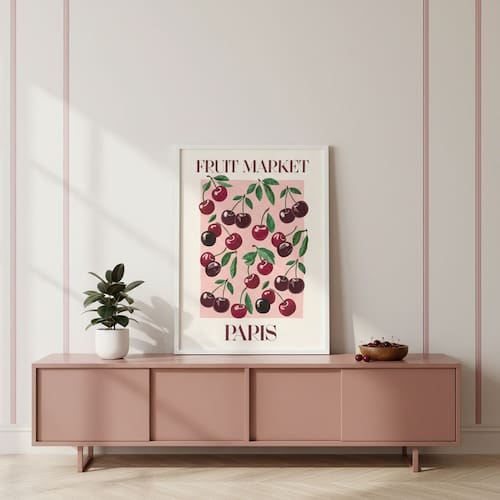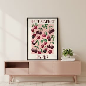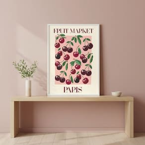 Quadro Cerejinhas Fruit Market Paris 70x50cm Mold Preta