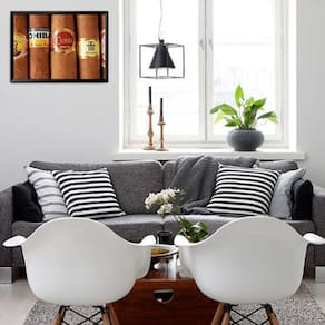 Quadro Charutos 2 A4 Quadro com moldura em madeira. Fita dupla face para pendurar sem sujeira. Este produto é a opção ideal para quem deseja comodidade na hora de decorar. informações do produto Moldura com 2cm de largura em madeira pinus com excelente acabamento fosco e arte impressa em vinil fosco alta durabilidade. Acompanha fita dupla face já instalada para pendurar a moldura e embalagem protetora com cantoneiras que evitam danos durante o transporte. Opções de formatos A4: gravuras no tamanho 21x30cm - medida externa: 24x33cm Prazo de produção: 03 a 05 dias úteis após aprovação do pagamento. As cores podem ter pequenas variações em relação a imagem do seu monitor. As medidas podem sofrer mínimas variações. Marca: Sdesign