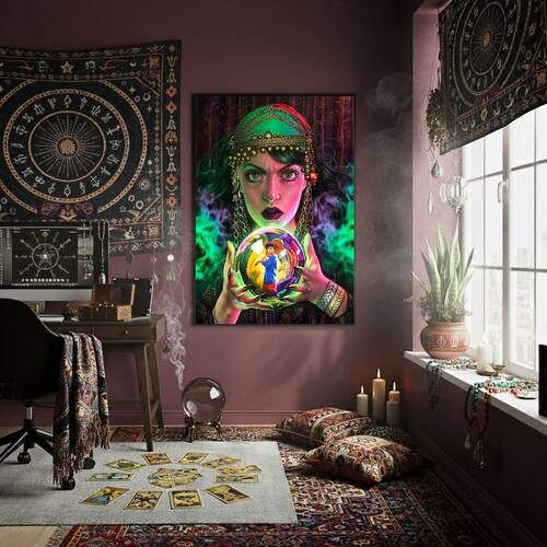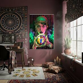 Quadro Cigana Cartomante Bola de Cristal - 70x50cm - Cor: Moldura Branca
