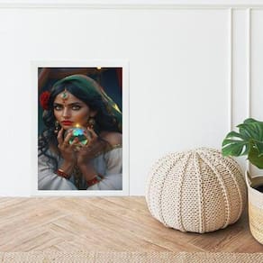 Quadro cigana com bola de cristal 45x34cm - com vidro Moldura: madeira preta Informações do produto tire todas as suas dúvidas no descritivo abaixo: decoração para quarto, sala, cozinha, escritório, área gourmet e muito mais. Chega de paredes vazias medidas - cada peça tem 45x34cm a3 . Material do papel - papel fotográfico brilhante de altíssima resolução acabamento - todos os quadros são acompanhados de vidro para proteção da imagem. - moldura em madeira maciça na cor preta ou branca conforme produto escolhido e pendurador . - os quadros são embalados de forma segura com plástico bolha com camada dupla de acordo com o tamanho dos quadros. Garantia - garantia de 3 meses. Meu quadro chegou. Como posso fixá-lo Você precisa apenas de um martelo e um prego, pois os quadros já vão acompanhados de penduradores. Esta é a forma mais indicada. Como posso limpar meu quadro A limpeza é feita como um móvel comum da sua casa. Apenas um pano seco ou espanador são suficientes para tal