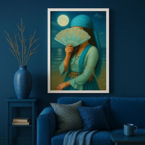 Quadro Cigana Da Praia - Azul 45x34cm - Cor: Moldura branca