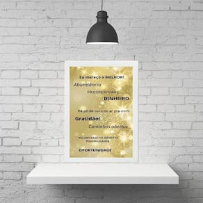 Quadro cocriação lei da atração - eu mereço 45x34cm Moldura: madeira branca Informações do produto tire todas as suas dúvidas no descritivo abaixo: decoração para quarto, sala, cozinha, escritório, área gourmet e muito mais. Chega de paredes vazias. Medidas - cada peça tem 45x34cm a3 . Material do papel - papel fotográfico brilhante de altíssima resolução acabamento - todos os quadros são acompanhados de uma película de acetato para proteção da imagem. - os quadros são embalados de forma segura com plástico bolha com camada dupla de acordo com o tamanho dos quadros. Garantia - garantia de 3 meses. Meu quadro chegou. Como posso fixá-lo Você precisa apenas de um martelo e um prego, pois os quadros já vão acompanhados de penduradores. Esta é a forma mais indicada. Caso prefira, você pode utilizar uma fita dupla face neste caso, sugerimos de alta qualidade para evitar que descole e seu quadro caia . Como posso limpar meu quadro A limpeza é feita como um móvel comum da sua casa. Apenas um pano seco ou espanador são suficientes para tal